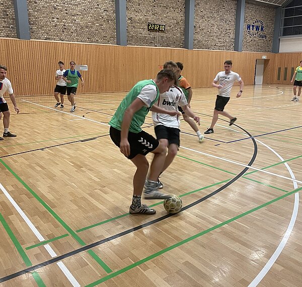Fußballaction in der HTWK Sporthalle