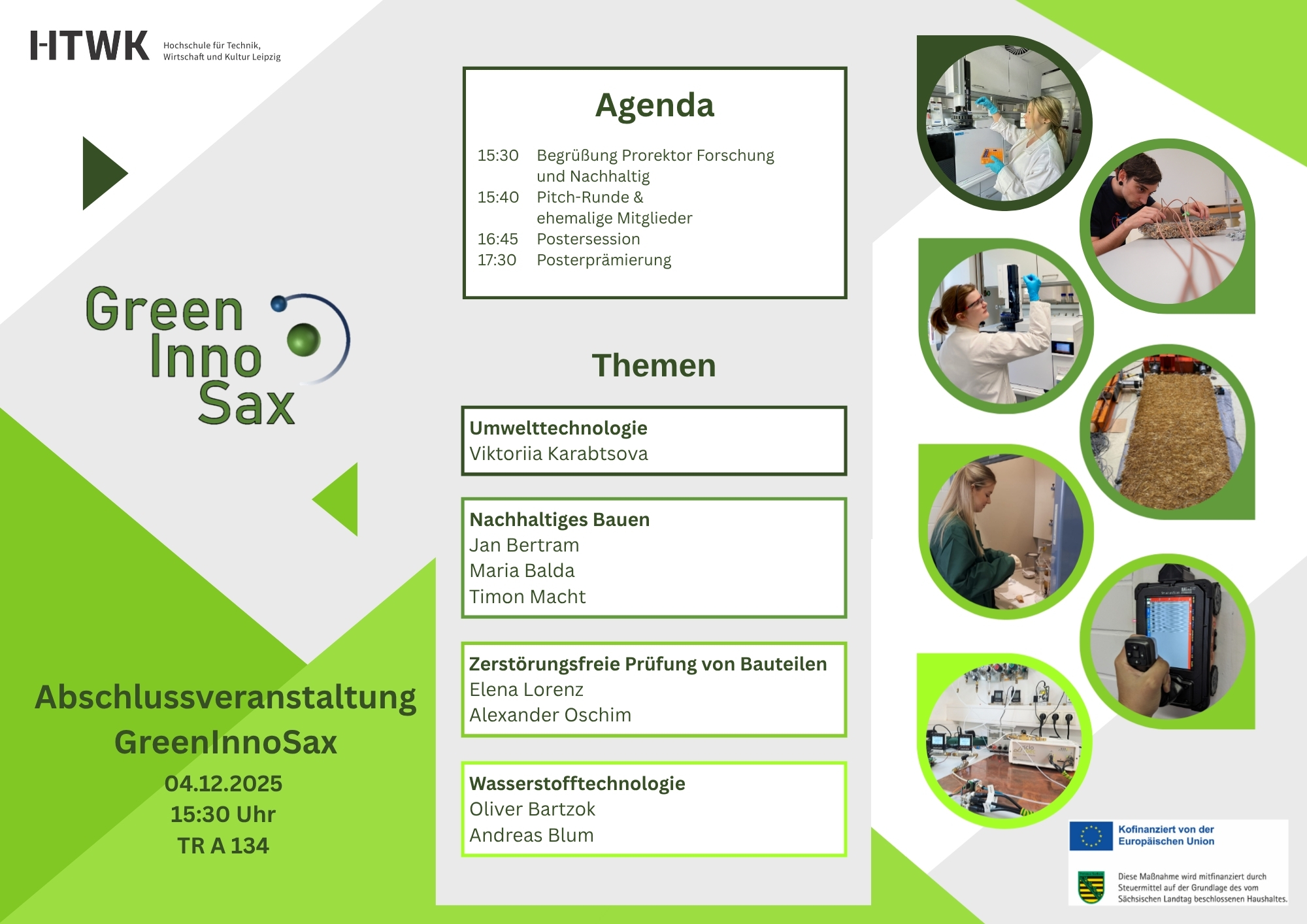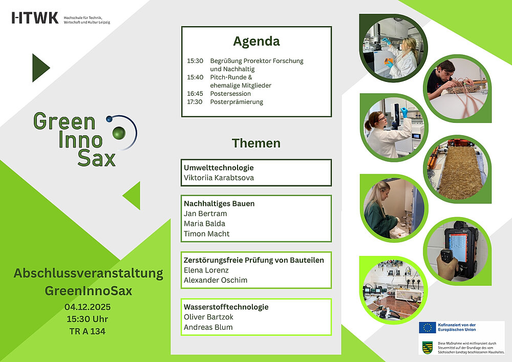 Wir möchten Sie daher recht herzlich zur Abschlussveranstaltung von GreenInnoSax am 04.12.2025 um 15:30 Uhr an die HTWK Leipzig einladen.
