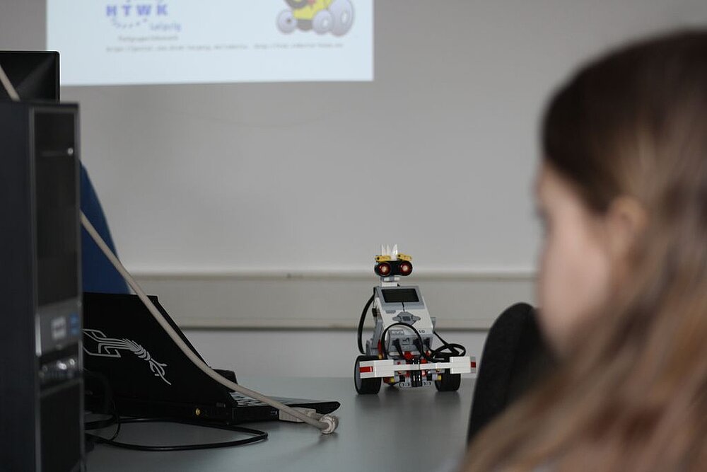 In einem dreistündigen Workshop konnten die Schülerinnen, die teilweise sogar aus Sachsen-Anhalt und Thüringen angereist waren, Informatikerinnenluft schnuppern und einen Roboter programmieren. Die Schülerinnen erhielten einen theoretisch Überblick über die Robotik und einen Einblick darin, welche Chancen und Gefahren eine zunehmend robotisierte Umwelt bergen könnte. Währenddessen gaben sie dem Roboter verschiedene Verhaltensweisen, später ein anderes Aussehen und einen Namen. Neben einer Tanzeinlage haben die Mädchen den Robotern eine aus Kollisionserkennung und später eine Hinderniserkennung zur Kollisionsvermeidung programmiert.